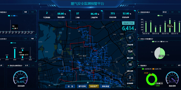 對相鄰地下空間、燃氣管網、燃氣閥門井、燃氣管道外部擾動風險區(qū)域/管段進行管網壓力、流量,閥門井可燃氣體泄露,相鄰地下空間可燃氣體,燃氣管道外部擾動風險區(qū)域/管段振動和井蓋異動等指標進行實時監(jiān)測,同時接入視頻圖像,實現(xiàn)動態(tài)安全監(jiān)管,構建燃氣管網綜合管理的動態(tài)監(jiān)測網絡,保證整個城市供氣穩(wěn)定安全運行。